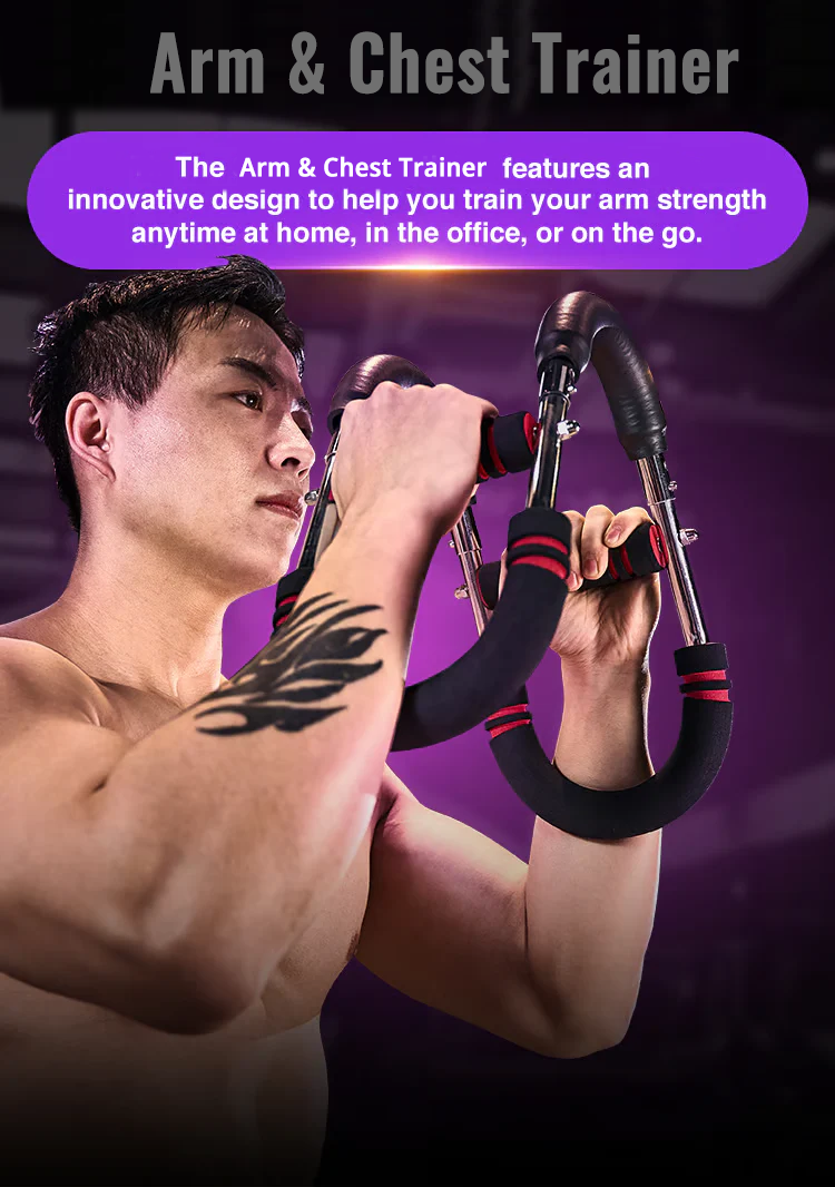 Want to boost your arm strength? Try incorporating a mix of push-ups and curls with the Arm & Chest Trainer for faster results!