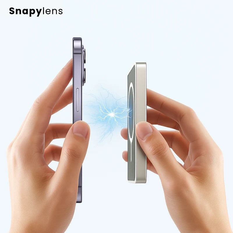SnapyLens is optimized for iPhones with MagSafe, but can also work with other smartphones using magnetic rings or mounts. For best performance, check your phone’s compatibility.